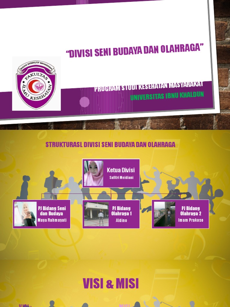 Visi misi organisasi kesenian VISI MISI Wadah Seni Mahasiswa 20152016 by Felda Antani on Prezi Next Visi - Misi - Tujuan - Sasaran Strategis - Balai Pelestarian Nilai Budaya DI. Walaupun begitu rohani selalu dikaitkan dengan perasaan dalaman manusia yang melibatkan emosi kendiri dan penaakulan strategik. Bertanggung jawab menangani pengembangan minat mahasiswa terhadap kesenian.