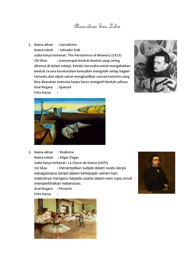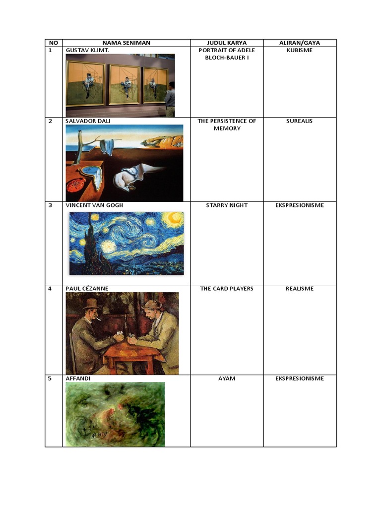 Nama Seniman Judul Karya Aliran Gaya Brainly Co Id