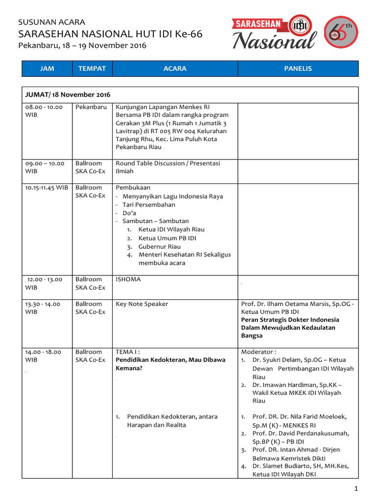 Susunan Acara Sarasehan Nasional Hut Idi Ke 66